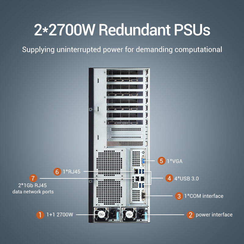 يمكنه دعم أنواع مختلفة من بطاقات GPU، وهو يدعم شكلين للتثبيت: على الرف أو البرجي، مما يتيح تلبية احتياجات العملاء بشكل أفضل في مختلف السيناريوهات التطبيقية، ويوفر أفضل منصة مادية للتطبيقات مثل الذكاء الاصطناعي ونماذج المحاكاة والعرض الرسومي.